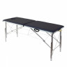 Двухсекционная складная кушетка с регулировкой высоты. Малый вес. Складной массажный стол с возможностью регулировки высоты и алюминиевыми ножками, что значительно облегчает вес стола. Увеличенные размеры ложа для удобства использования.